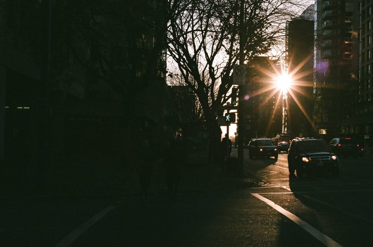 夕日と道路