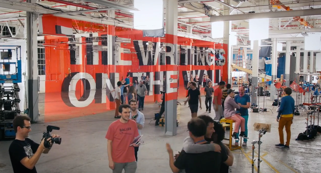 カメラが横に移動すると今回の曲「The Writing's On the Wall」の文字が出てきました