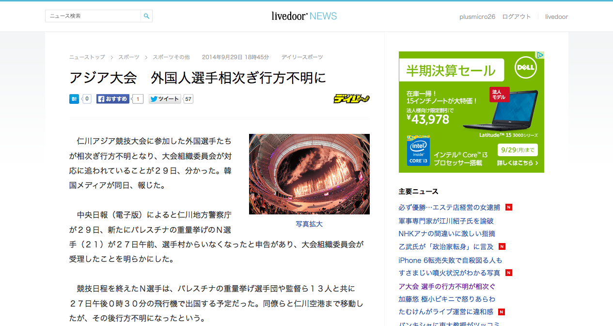 中央日報(電子版)によると仁川地方警察庁が29日、新たにパレスチナの重量挙げのN選手(21)が27日午前、選手村からいなくなったと申告があり、大会組織委員会が受理したことを明らかにした。