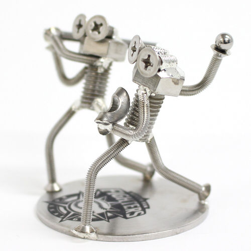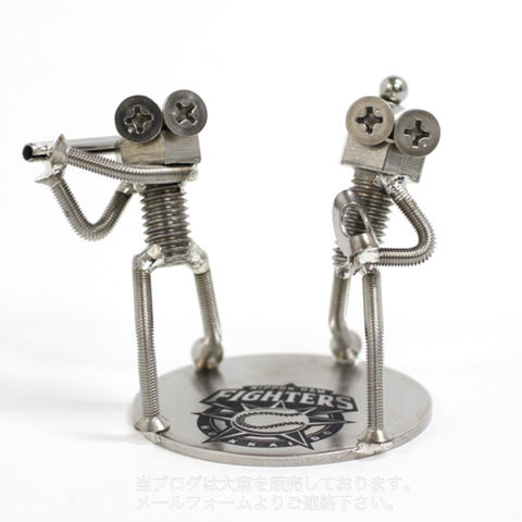 職人がボルトやナット、ワッシャーなどを使い半田づけして、1個1個丁寧に作り上げた愛らしい人形です。