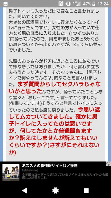 まあワイも居酒屋の女子トイレで用を足したことあるからあんまり強く言われへんわ