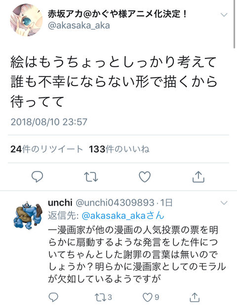 こんな漫画の人気投票くらいで大騒ぎするなやガイジかよ