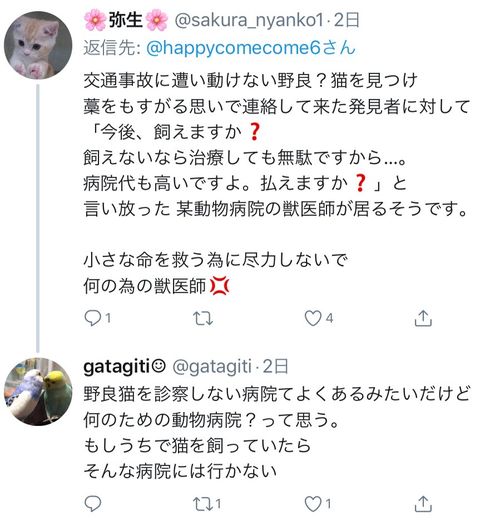 猫好き動物好きなら動物病院行って治療費払うのは当たり前でそw