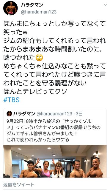 あの番組てラスト5分くらいから急ピッチで番組進めていくよなwその間にマッチョの人が一瞬映ってたわ