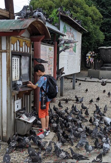 鳩たちがちゃんと理解してるし、頭のってるのに動じない少年がすごすぎるww