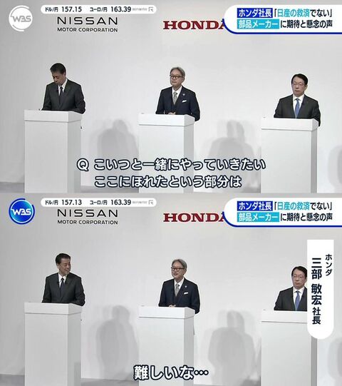 HONDA社長【経産省から圧力かけられなきゃ誰が日産とやりたいと思うんだ】って心の声が漏れてそう