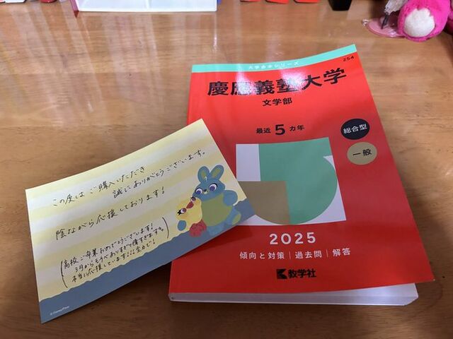 メルカリで受かった人から慶應の赤本買ったら人間性まで慶應レベルすぎて涙 pic.twitter.com/WzdVhKsoEL