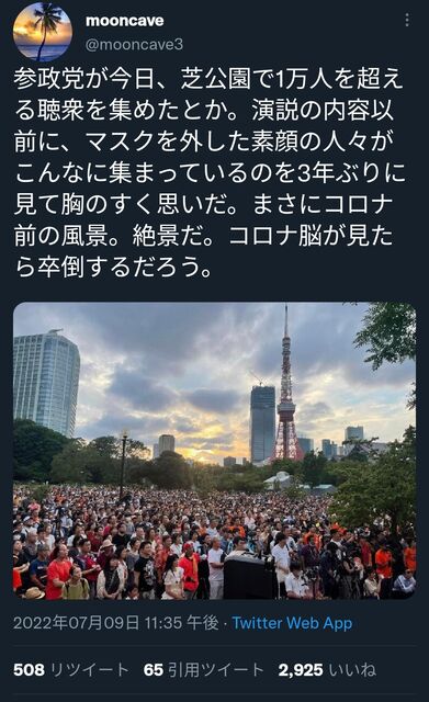 演説聞いて会話しないなら厚生省のガイドライン的にもマスクなしでいいんやないん?