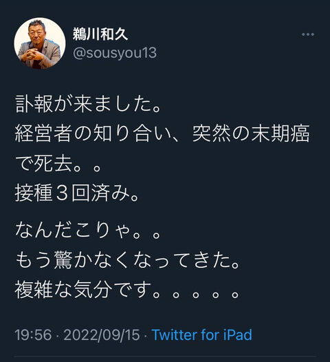 未発見で手遅れの末期癌ならあり得るけど「それってワクチン打ったからガンが発症したに違いない!」って結びつける発想になるのがやばい