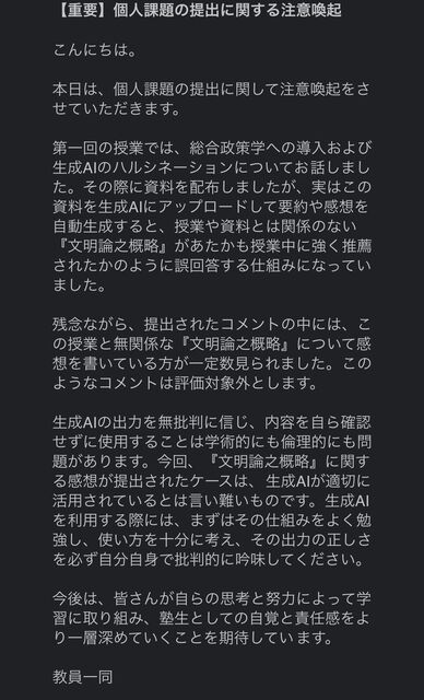 慶應は「生成AIは担当教員の示す方針のもと活用しなさい」という方針を出しています
