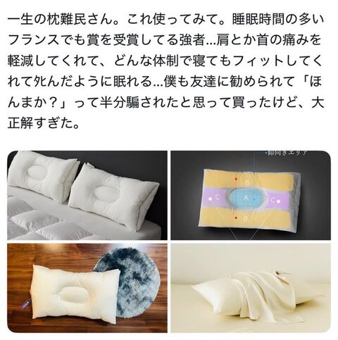 これが噂の「腰痛、ストレークネック界隈撲滅枕」か…フランス睡眠協会で金賞取るだけあるわな。。。 pic.twitter.com/qs9cOXXmOL