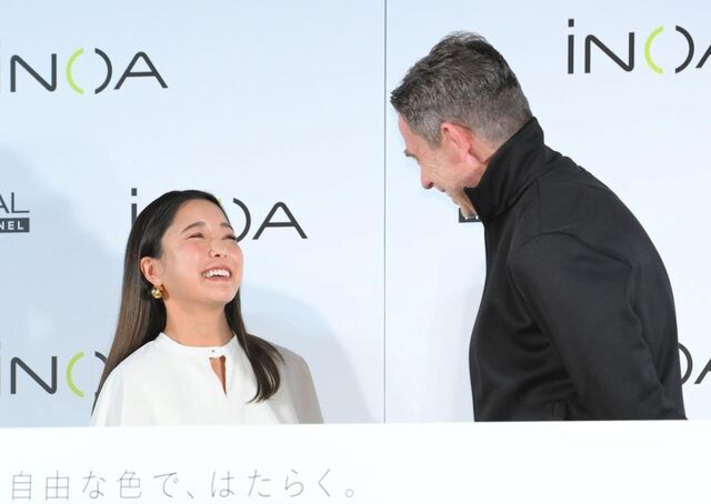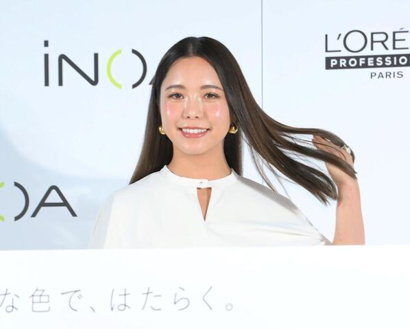 白色のワンピース姿で登場し、髪について「モチベーションを上げること。見せる競技でもあるので自分の個性を大切にしたい思いがあります」とこだわりを明かした。