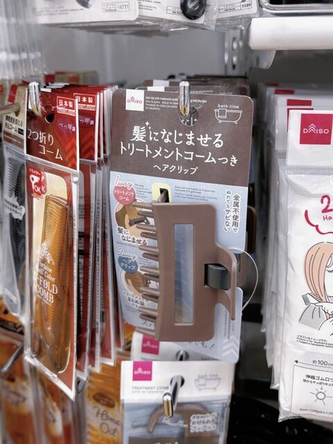 お風呂でまとめ髪ができちゃうヘアクリップ。これ自体がコームにもなるのが凄すぎる。もちろん110円 pic.twitter.com/GNgBcrHlYR