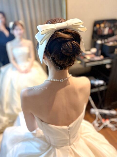 甘々のリボンに、エレガントなアップヘアがたまらない