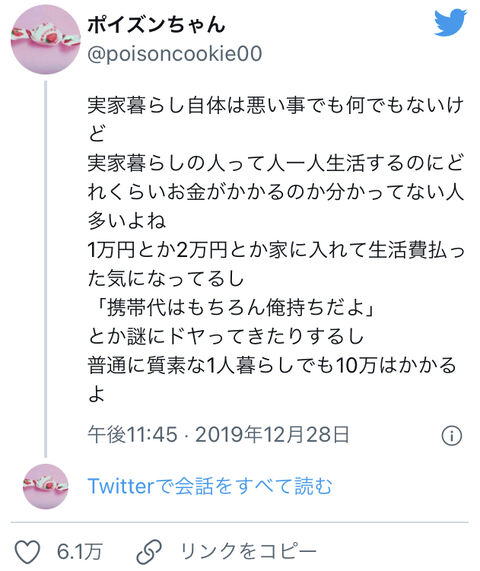 最後の1行は家賃込みの一人暮らしトータル出費の話