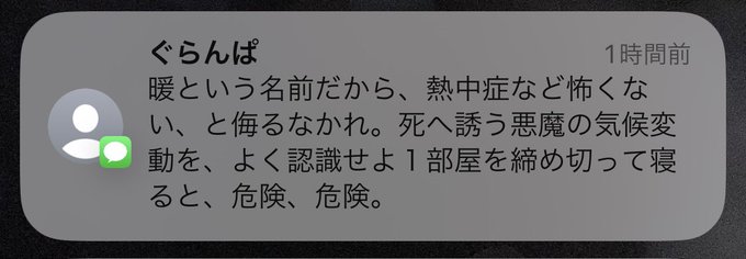 めっちゃ言い回しがかっこいいのもそうだしお年寄りの人で熱中症にちゃんと認識あるのいいな