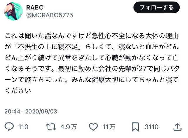 「不摂生+寝不足」は、静かに命を削っていく感じで本当に怖い。