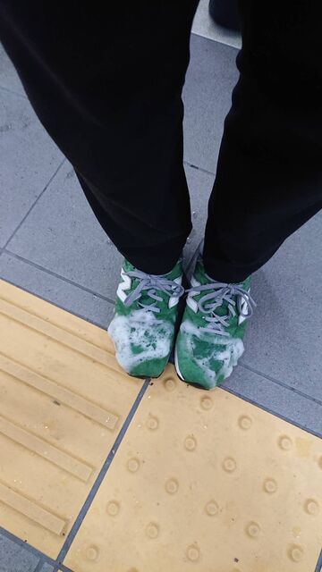 嫁がそれを履いて出かけたら雨に濡れてモコモコになりました!