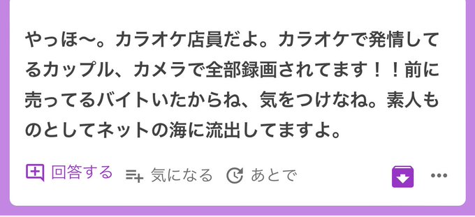 私のバ先のカラオケはルーム内のカメラはないけど、バレたら会員情報のメモ欄に記録されるから全店共有になるゆ