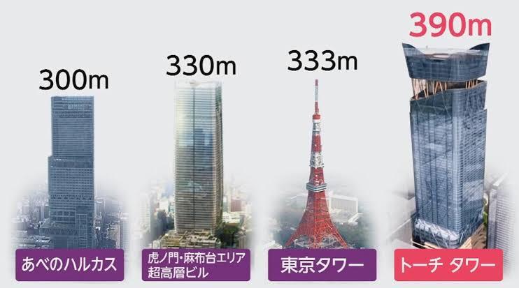 あべのハルカスが300mでトーチタワーが390m予定だからそうなるわね