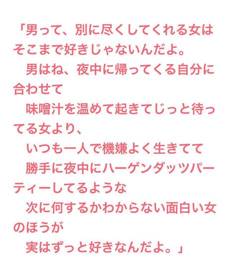 まるっきり女側の性質や「女は尽くしてくれる男を好きにならない」