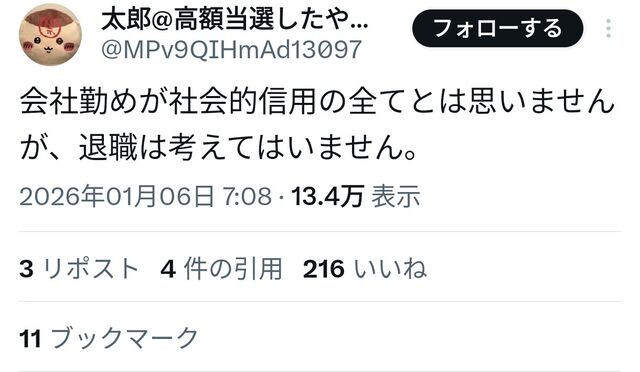 俺も億単位当たっても会社は辞めないかな