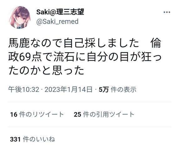 ワイ倫政75やったけど
