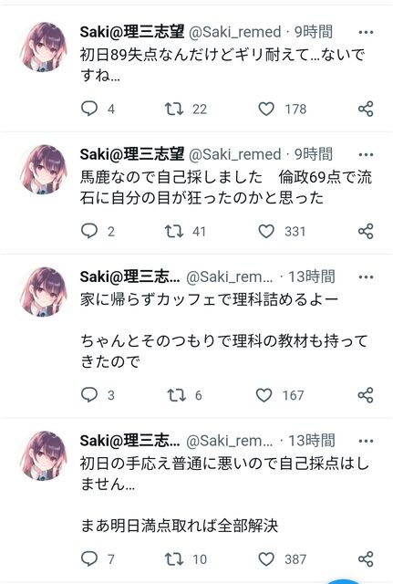てか感触9割で実際7割弱って絶対勉強してなかった感想やん