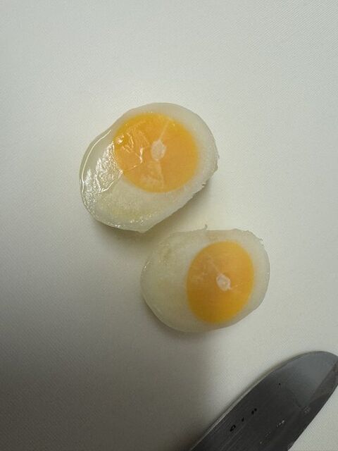 >冷凍卵は流水にさらすと、簡単に殻がむけます。白身が溶けて流れないうちに、包丁で半分に切ることも可能。そのため、冷凍卵で目玉焼きが2個作ることも!