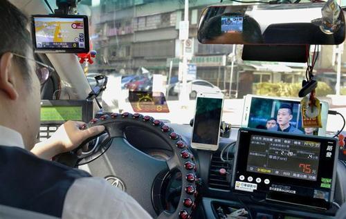 台北市内でタクシーに乗って驚きました。運転席周りに多くの電子機器が置かれ、